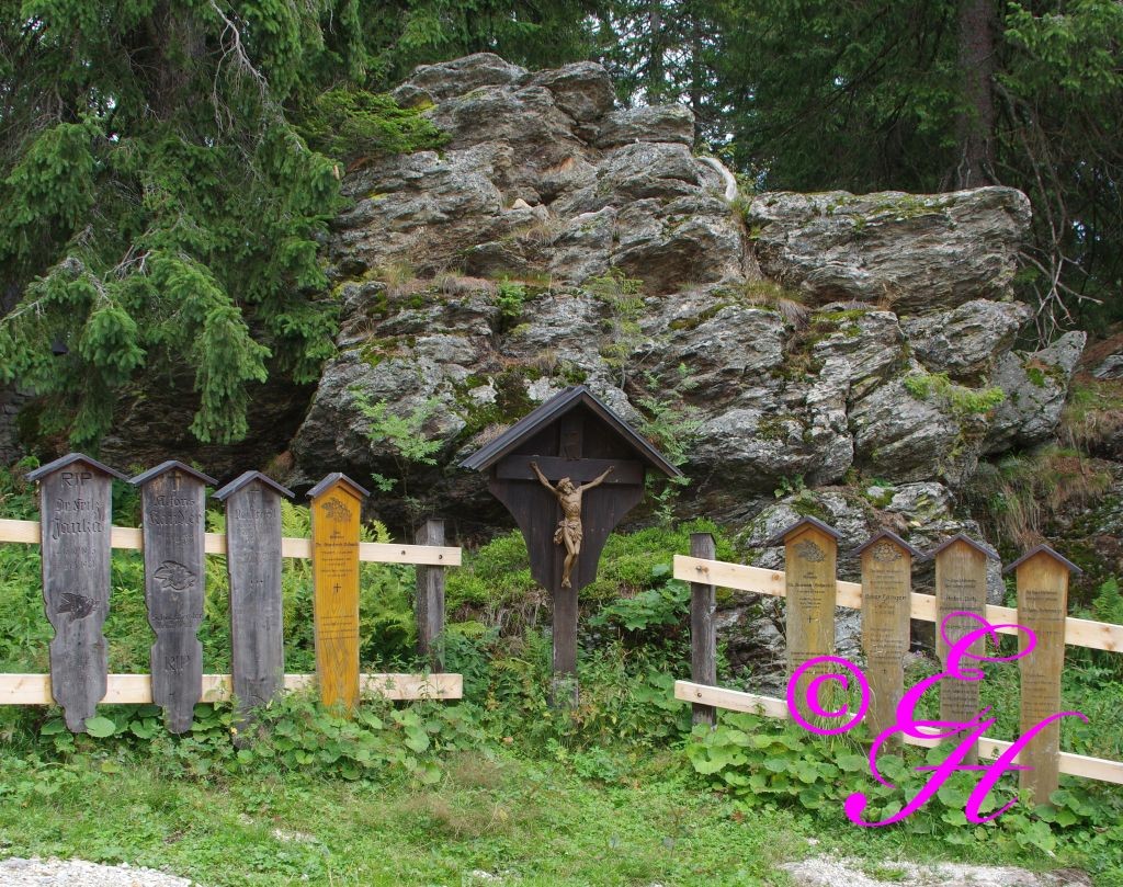Auf dem Plateau geht es ziemlich eben dahin bis zum Gipfel des Großen Falkensteins. Wir gehen zuerst in die Kapelle. Auch die neue Hütte ist fast fertig. Einkehren kann man schon. Das haben wir natürlich auch getan. Am Panoramafenster war gut speisen. Sehr zu empfehlen.