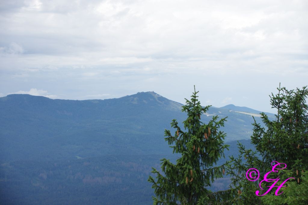 Neben dem Gipfelkreuz kann man die Aussicht zum Großen Arber genießen. Ein wunderbares Panorama eröffnet sich hier ebenfalls.